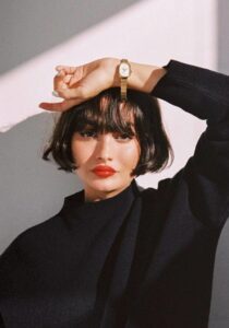 Pour lui donner un côté chic et mystérieux, le French Bob se porte avec quelques mèches qui dépassent sur le visage. C’est le carré tendance de l’année 2021 !